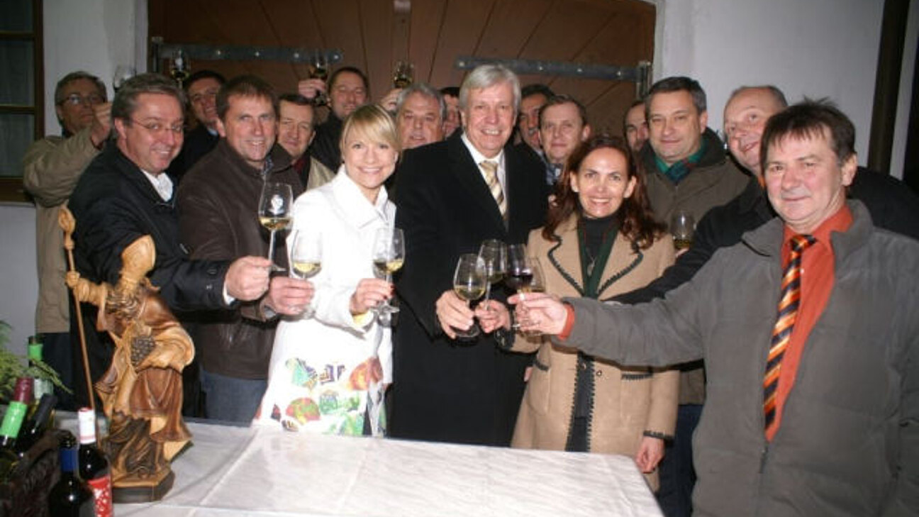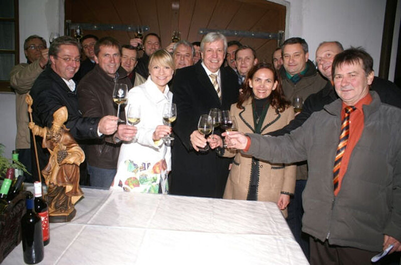 Neben unserer Weinpatin konnten die Weinbauern (Rudolf Zeitlberger, Karl Buchinger, Franz Supper und Johannes Pober) ua in Vertretung von Herrn Landeshauptmann Dr. Erwin Pröll, Herrn Landesrat Mag. Johann Heuras, zahlreiche Spitzenpolitiker, Funktionäre diverser Körperschaften und eine große Anzahl an Besuchern in den Weinkellern am Schüttberg begrüßen. Nach den Begrüßungsworten durch den Obmann des Weinbauvereines, Herrn Rudolf Zeitlberger, der Ansprache von Herrn Landesrat und der Weintaufe durch unseren Herrn Pfarrer hielt unsere Weinpatin ihre sehr persönliche Rede, ehe es zur Weinverkostung in die beiden Weinkeller ging. Die Anwesenheit von Herrn Landesrat nutzte die ÖVP, um unseren Spitzenpolitiker über einige wichtige Angelegenheiten in unserem Ort zu informieren. So brachten wir auch die viel diskutierte ÖBB Spange Götzendorf zur Sprache. Wir vereinbarten mit Herrn Landesrat eine noch engere Zusammenarbeit, damit wir rechtzeitig über alle weiteren Schritte im Bezug auf dieses Projekt auch informiert werden. Diese Informationen werden wir selbstverständlich auch umgehend der Bevölkerung weitergeben. Abschließend bedanken wir uns bei den 4 Weinbauern, dass Sie die liebgewordene Tradition der Weintaufe auch weiterhin aufrecht erhalten wollen und freuen uns schon auf die Weintaufe 2010!
