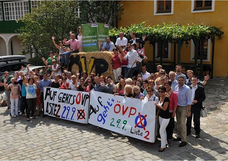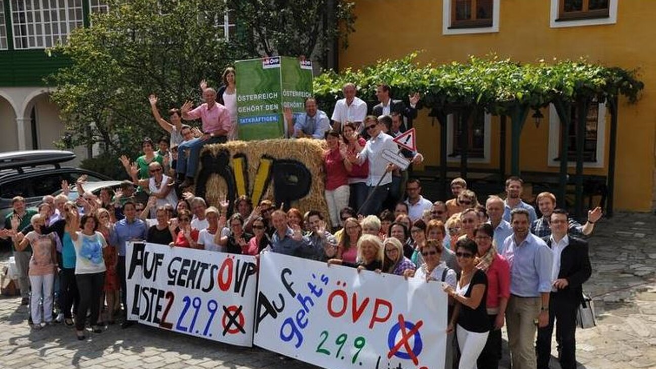 Den Startschuss für die Landschaftsbilder gaben die Mitarbeiter der Volkspartei, jetzt liegt es an den Gemeinden die Landschaft für die bevorstehende Nationalratswahl zu rüsten. Am 29.09. wird gewählt – Auf geht’s ÖVP