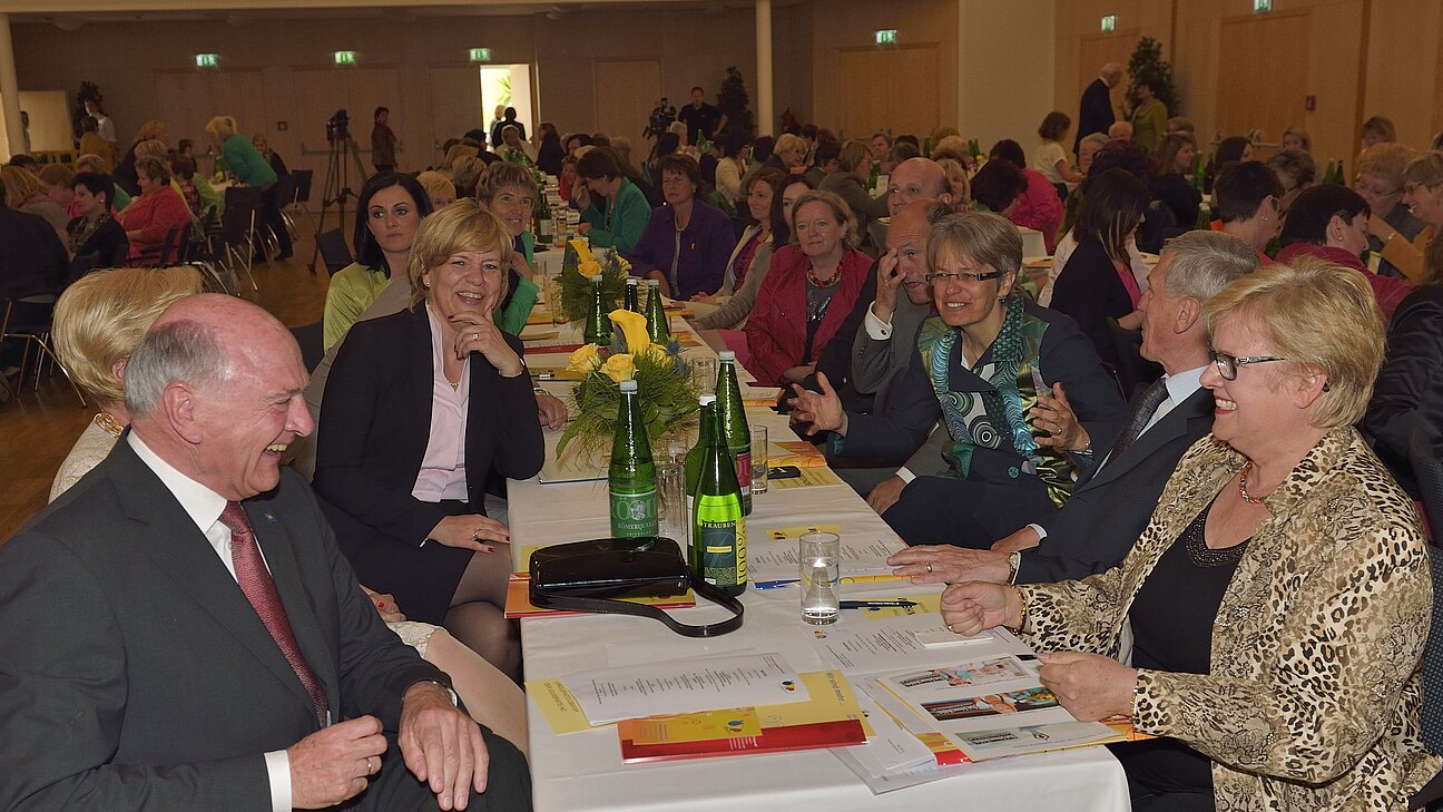 FB-Bezirksobfrau Stvtr. Christine Besser, GR Inge Leinwather, FB-Bezirksleiterin Alexandra Jaitner, FB-Bezirksobfrau Stvtr. Andrea Koch sowie Ortsleiterin Gertrude Eichenseder und Renate Kousal freuen sich auf die gute Zusammenarbeit mit der neu gewählten Landeschefin und bedankten sich bei der scheidenden Landesobfrau und jetzige Bundesleiterin Dorothea Schittenhelm für ihren Einsatz bei Familien- und Frauenanliegen in den letzten Jahren. LH Dr. Erwin Pröll und Gattin sowie LR Barbara Schwarz und die EU-Abgeordneten Othmar Karas und Elisabeth Köstinger ließen sich ebenfalls nicht die Krönung der neuen Landesobfrau entgehen und gratulierten herzlich.