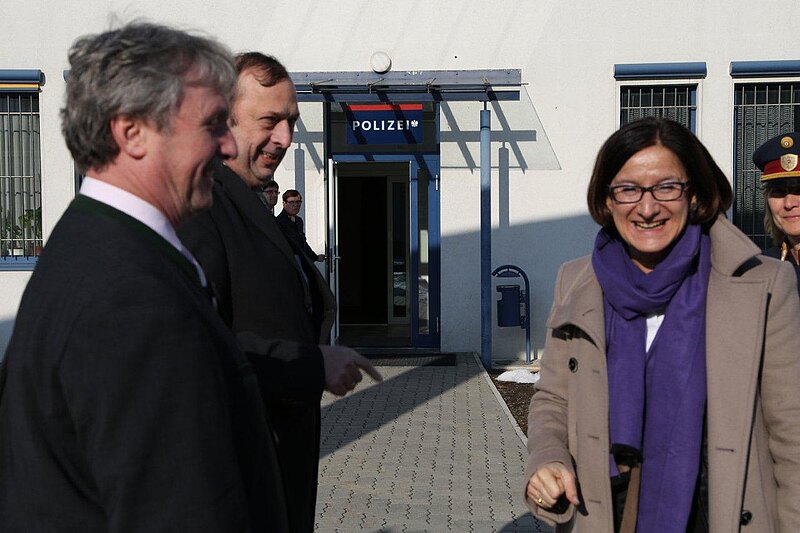 Innenministerin Johanna Mikl-Leitner besuchte auf Ersuchen der VP-Bezirksparteispitze, allen voran Bgm. Gerhard Schödinger, am 21.2. das Bezirkspolizeikommando in Bruck, um sich einerseits von den ersten Erfolgen der in den letzten Monaten gesetzten sicherheitspolitischen Maßnahmen berichten zu lassen und weitere konkrete Schritte zur Sicherheit der Bürger im Bezirk bei einer kurzen Kaffeejause zu besprechen. Begrüßt wurde die Innenministerin von Landespolizeidirektor HR Dr. Franz Pucher und Bezirkspolizeikommandantin Sabine Zentner.