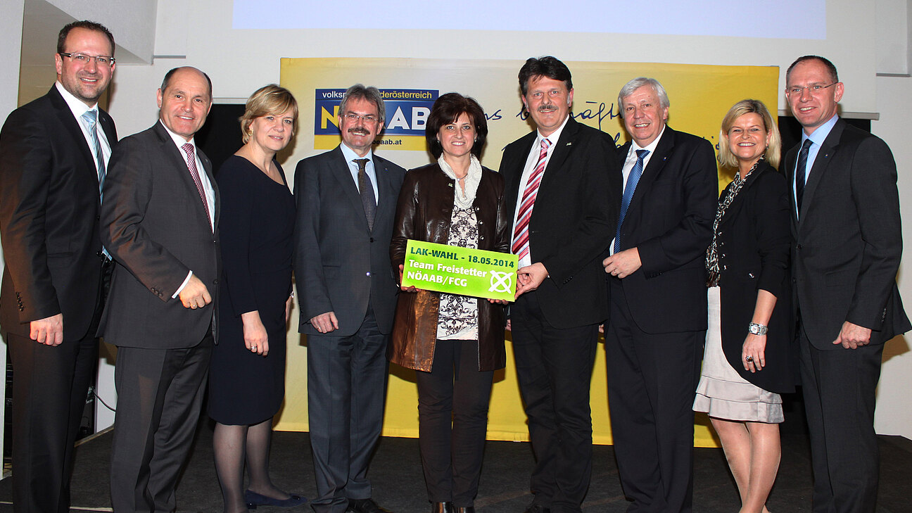 Mit knapp 21.000 Wahlberechtigten sind bei der Landarbeiterkammerwahl am 18. Mai um rund 10 Prozent mehr Beschäftigte in der Land- und Forstwirtschaft aufgerufen ihre Interessensvertretung zu wählen als 2008. Den Auftakt zur LAK-Wahl 2014 ließen sich auch zahlreiche Partner und Freunde der LAK nicht entgehen. Neben den 100 KandidatInnen des Team Freistetter NÖAAB/FCG mit Präsident Ing. Andreas Freistetter und Vizepräsidenten Josefa Czezatke sowie NÖAAB-Obmann LH-Stv. Wolfgang Sobotka und NÖAAB-Geschäftsführer Bernhard Ebner waren u.a. mit dabei: LR Barbara Schwarz, LR Karl Wilfing, der 2. Landtagspräsident Johann Heuras sowie VPNÖ-Geschäftsführer Gerhard Karner, NÖ Bauernbund-Direktorin Klaudia Tanner und die NÖ Seniorenbund-Geschäftsführer Walter Hansy und Herbert Bauer.