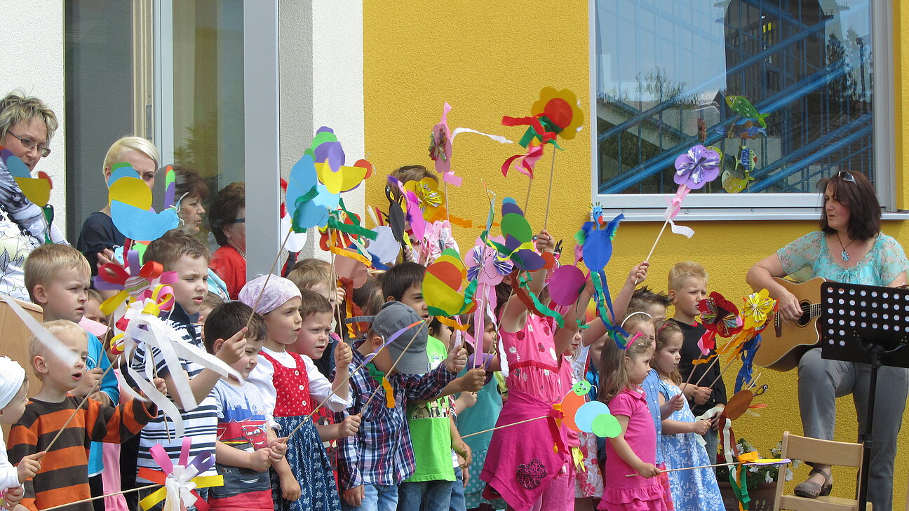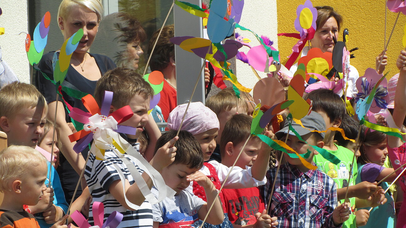 Landesrätin Barbara Schwarz eröffnete gemeinsam mit Bgm. Markus Plöchl und Vizebürgermeister Michael Kober den neuen Kindergartenzubau in Enzersdorf bei strahlenem Sonnenschein. Die Kindergartenkinder trugen ihre dafür eigens einstudierten Lieder vor, bevor das Haus gesegnet den Kindern übergeben wurde.