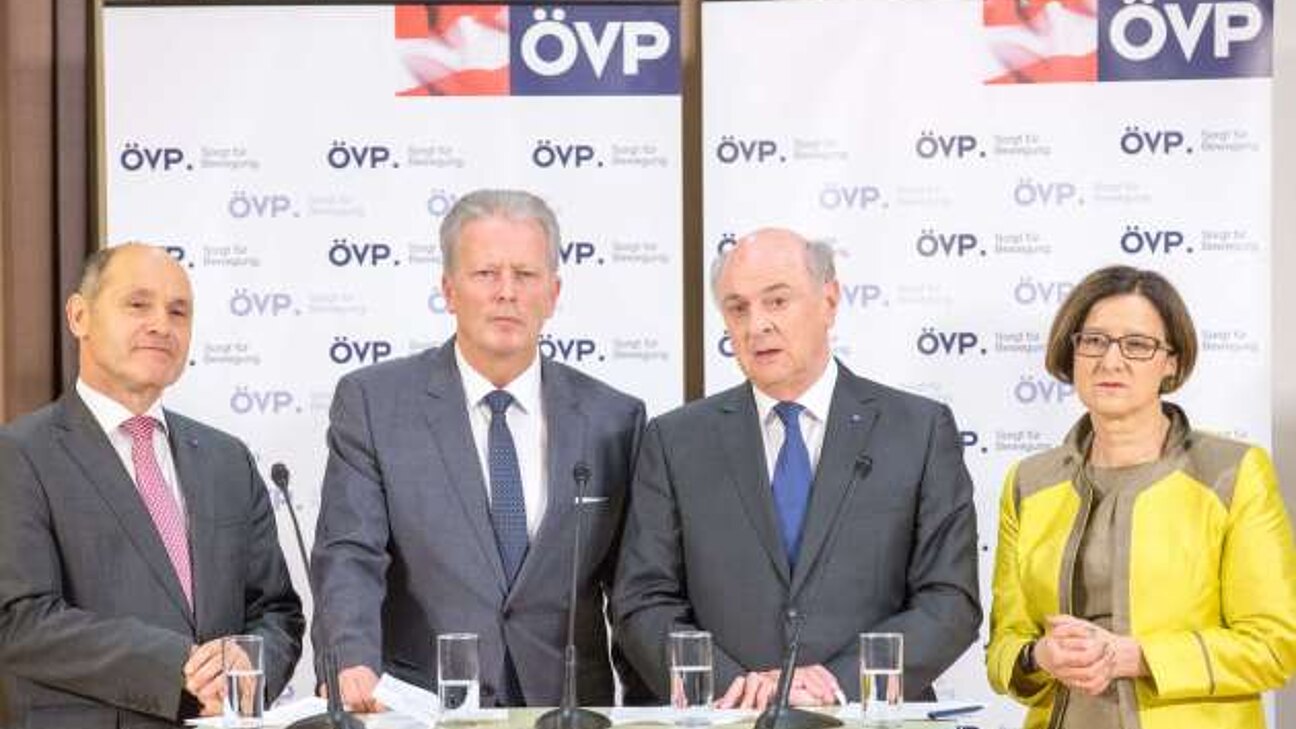 Im Rahmen einer Pressekonferenz informierten darüber Bundesparteiobmann Vizekanzler Reinhold Mitterlehner, NÖ Landesparteiobmann LH Dr. Erwin Pröll, die designierte LH-Stellvertreterin Johanna Mikl-Leitner sowie der designierte Innenminister Wolfgang Sobotka.