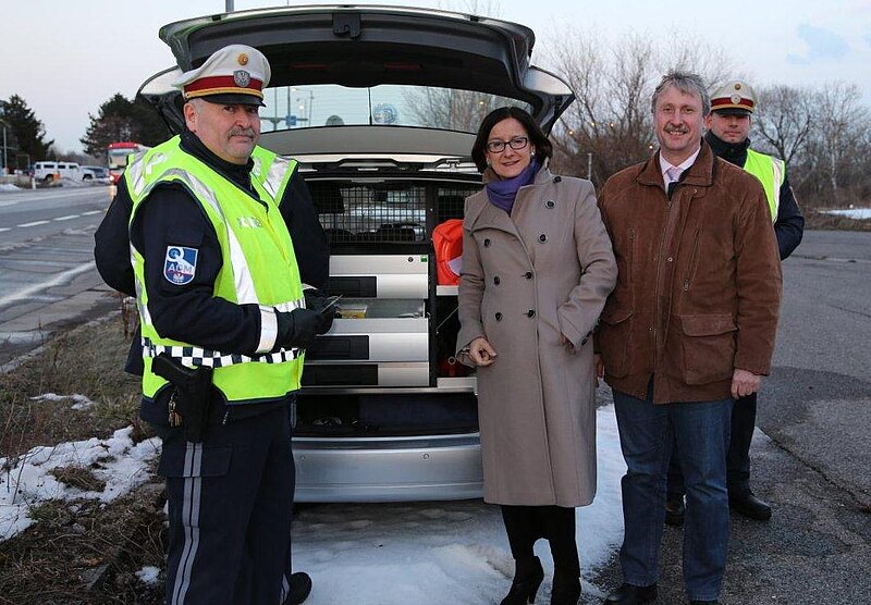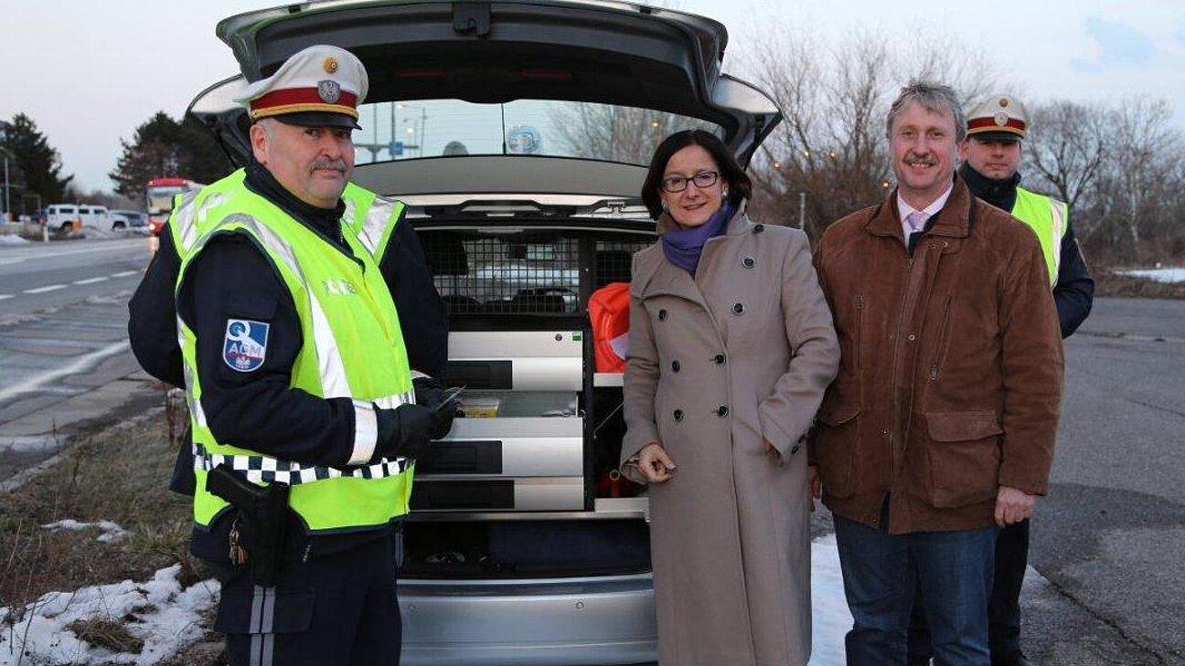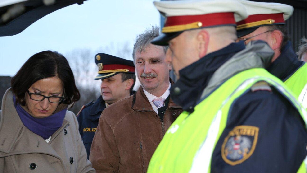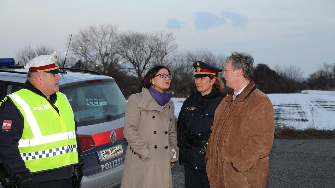 Bereits im Dezember und Jänner hat die Polizei auf Initiative der VP-Bürgermeister im Bezirk Schwerpunktaktionen und Präventivmaßnahmen in der Region durchgeführt. Gestern später Nachmittag besuchte Innenministerin Johanna Mikl Leitner nicht nur die Bezirkspolizeistation Bruck, um die derzeitige Sicherheitslage im Bezirk zu besprechen, sondern nahm sich auch Zeit, um bei einer weiteren Schwerpunktaktion an der Grenze zur Slowakei außerhalb der Gemeinde Berg dabei zu sein. „Diese punktuellen Einsätze an der Grenze wird es auch künftig geben“, so die Innenministerin. Die seitens VP-Bezirksparteiobmann Gerhard Schödinger stets geforderte Erhöhung der Präsenz von Polizisten auf der Straße sowie die von ihm stets unterstützte Forderung nach zusätzlichen Polizei-Ressourcen tragen nun ihre Früchte: Der Bezirk Bruck/L. erhält ab 1. März 2013 zusätzlich 5 Polizisten, um die sicherheitspolitische Zusammenarbeit der beiden Bezirke Bruck und Gänserndorf weiter gezielt ausbauen zu können. Lt. Gerhard Schödinger, der selbst Polizist ist und seit Jahren erfolgreich die Zusammenarbeit der österreichischen Behörden mit den slowakischen Polizeistellen unterstützt, zeigt die Statistik, dass man mit den gesetzten Maßnahmen am richtigen Weg ist: „Die SOKOs weisen mittlerweile doppelt so viele Aufgriffe bei Schleppern auf wie noch im Vorjahr. Auch im Bezirk haben wir die Kfz-Einbrüche mittlerweile gut im Griff“, meint Schödinger und bedankt sich gemeinsam mit der Innenministerin bei den Polizeikräften auf den Polizeiinspektionen und dem Bezirkskommando für ihre Einsatzbereitschaft und enormen Bemühungen im Dienste unserer Bürger. „Daher werden wir auch gemeinsam mit dem Land NÖ weiter konsequent hart arbeiten, um der Bevölkerung in unserer Region zwar einerseits konkrete Niederösterreichische Landesförderungen zum Thema „Sicheres Wohnen“ (Förderung von Sicherheitstüren, Alarmanlagen etc.) als eine der Präventivmaßnahmen auch künftig anzubieten, andererseits jedoch wollen wir die verstärkten Polizeiressourcen noch effizienter zum Schutz der Bevölkerung einsetzen“, meint VP-Spitzenkandidat Gerhard Schödinger.