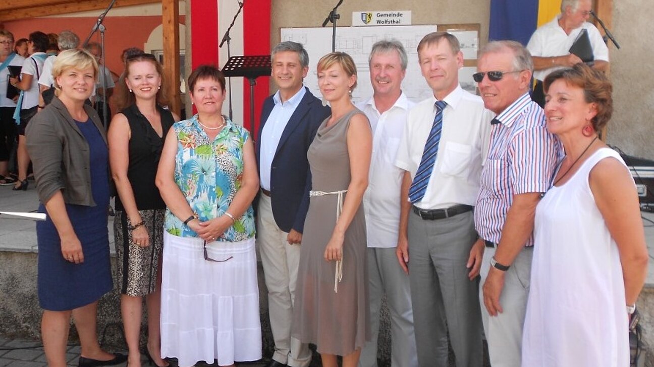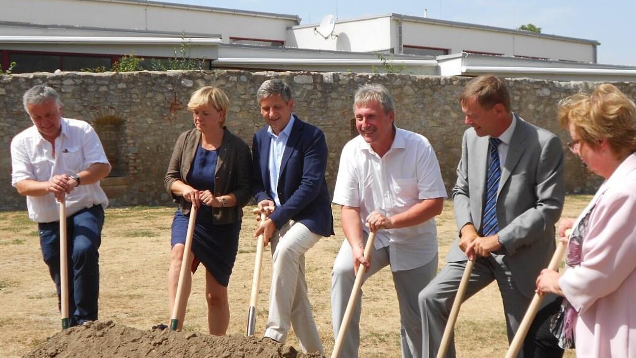 Vergangenen Donnerstag fand in Wolfsthal bei brütenden 40°C der Spatenstich für die Errichtung der neuen Volksschule am Dorfplatz statt. Vizekanzler Michael Spindelegger und LR Barbara Schwarz waren als Ehrengäste geladen.
