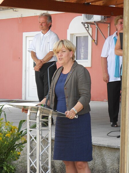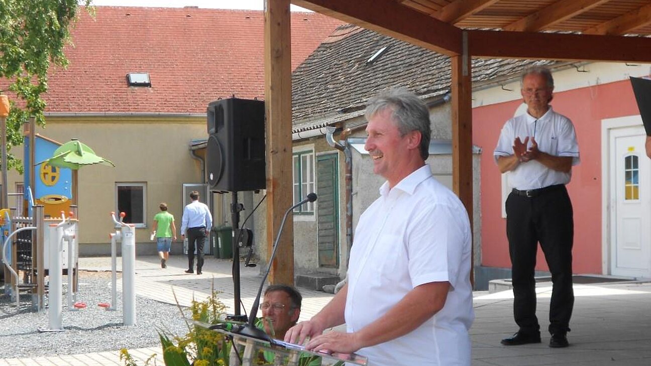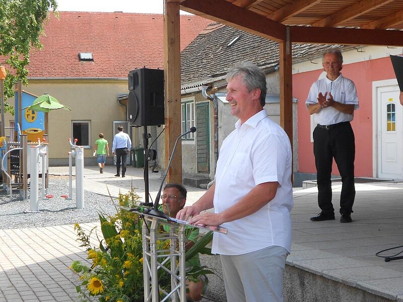 Als weiterer Programmpunkt war die sehr authentische Rede von Frau Landesrätin Mag. Barbara Schwarz, die auch den Kindergarten vom Ort und dessen Pädagogen, sowie dessen sprachliche Vielfältigkeit positiv hervorhob.
