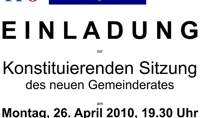 E I N L A D U N G zur Konstituierenden Sitzung des neuen Gemeinderates am Montag, 26. April 2010,…